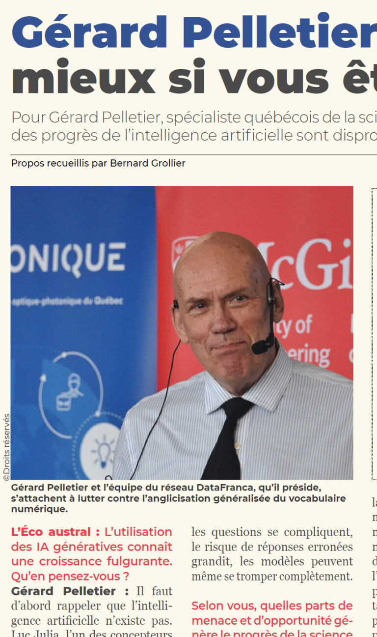 Depuis plusieurs années, Gérard Pelletier et l’équipe du réseau DataFranca, qu’il préside, s’attachent à lutter contre l’anglicisation généralisée du vocabulaire numérique. En mode collaboratif, ils enrichissent des lexiques en français